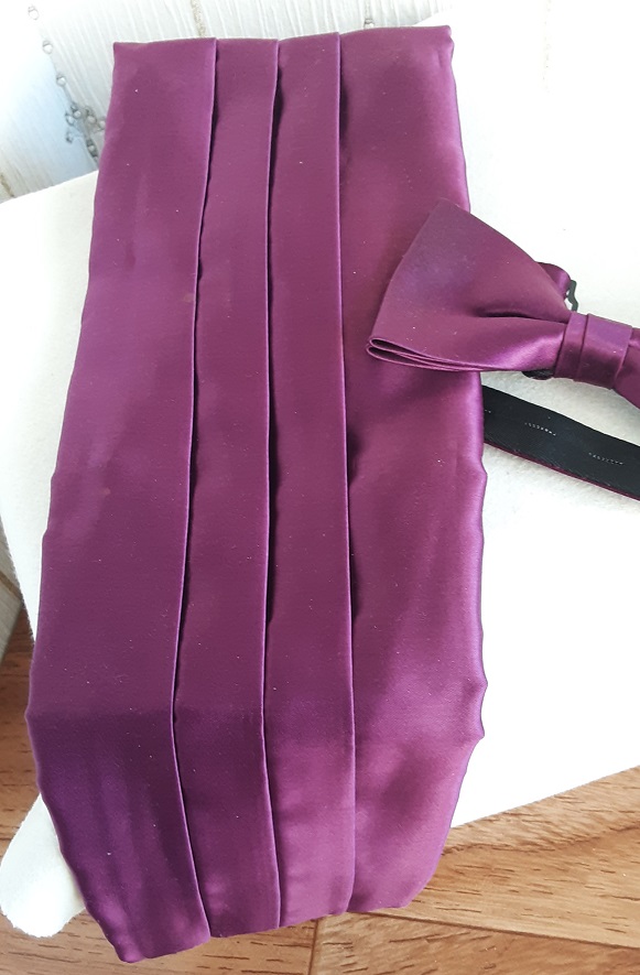 Cummerbund-set. Den rätta färgen är den som är på flugan. Svårt att fota mörka färger. Helt ny oanvänd.